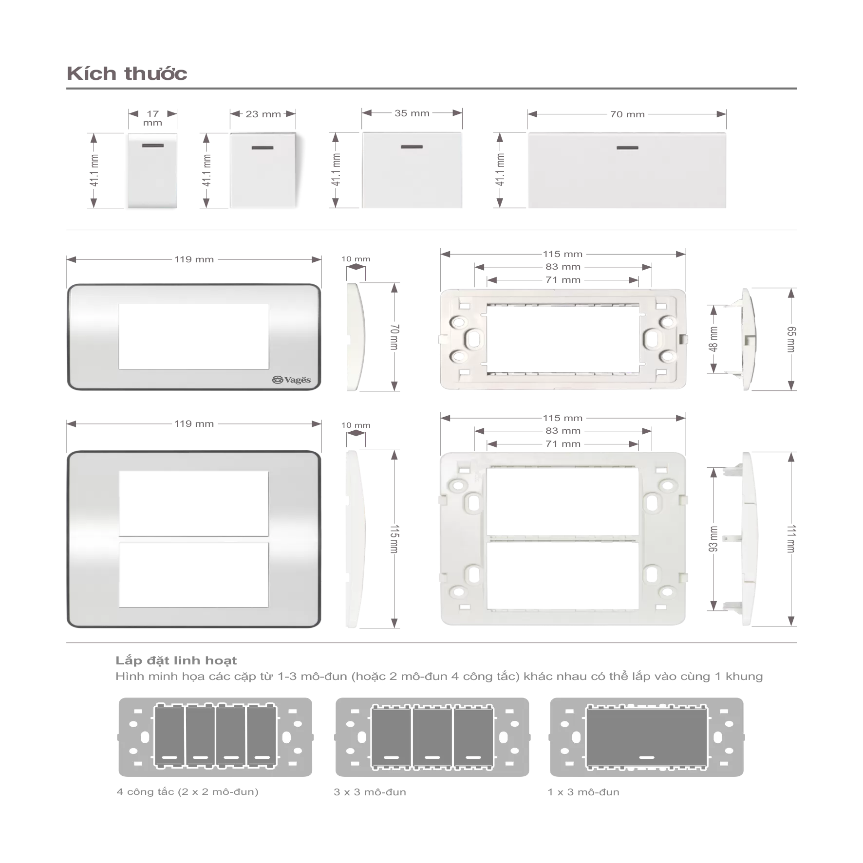 Vages - Mặt nhựa chứa 1 MCCB chữ nhật kiểu A màu trắng, viền màu - VG121/HA/TR/KH