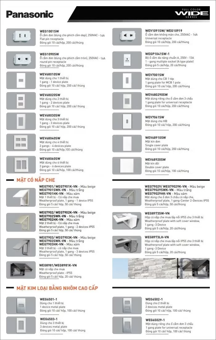 Thông số kỹ thuật chi tiết Mặt có nắp che mưa Panasonic WEG7901SWK-VN