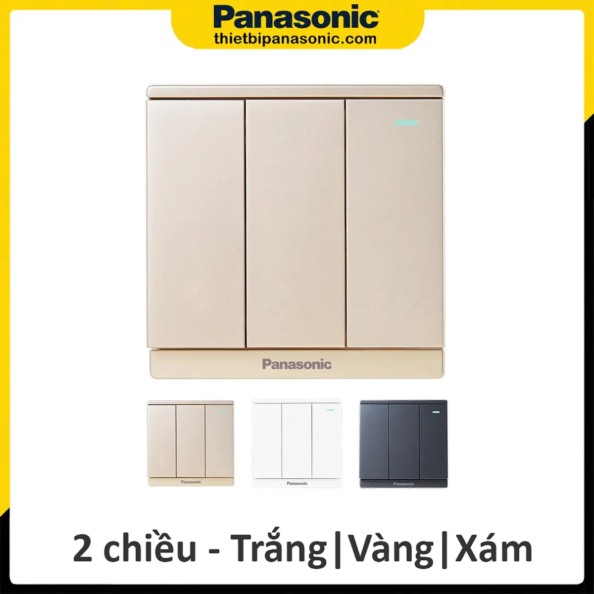 Bộ 3 công tắc 2 chiều Panasonic Moderva Vàng WMF516MYZ-1VN có chỉ báo dạ quang