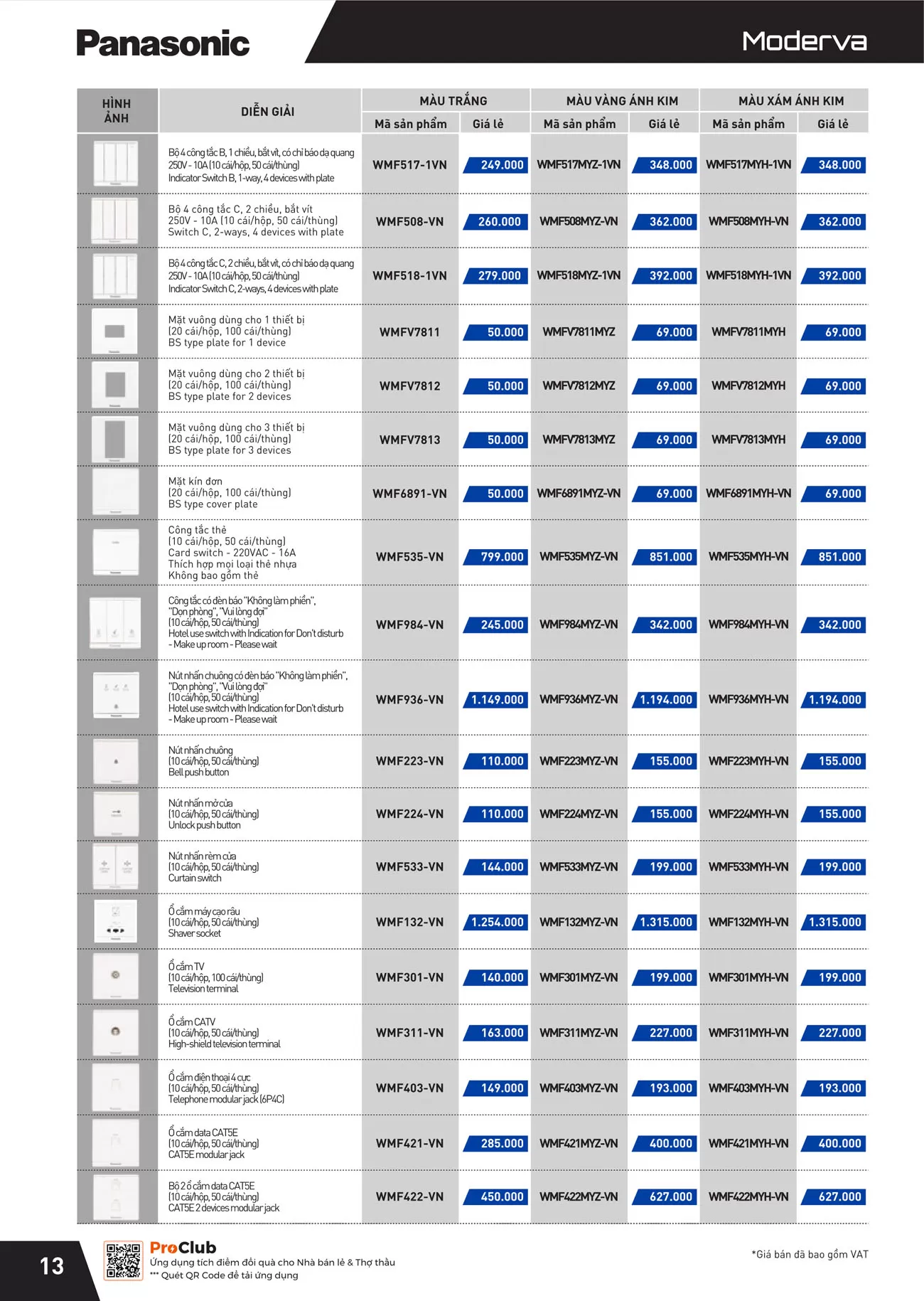 Công tắc Moderva Panasonic mang phong cách hiện đại với thiết kế tỉ mỉ, bề mặt sơn công nghệ cao bóng mịn, các góc cạnh vuông vắn tạo hiệu ứng đổ bóng tinh tế. Thao tác bật tắt nhẹ nhàng, êm ái, mang đến trải nghiệm sử dụng thoải mái. Chất liệu chống cháy Urea resin đảm bảo an toàn tối đa. Đây là dòng sản phẩm mới, phù hợp với các không gian kiến trúc hiện đại.