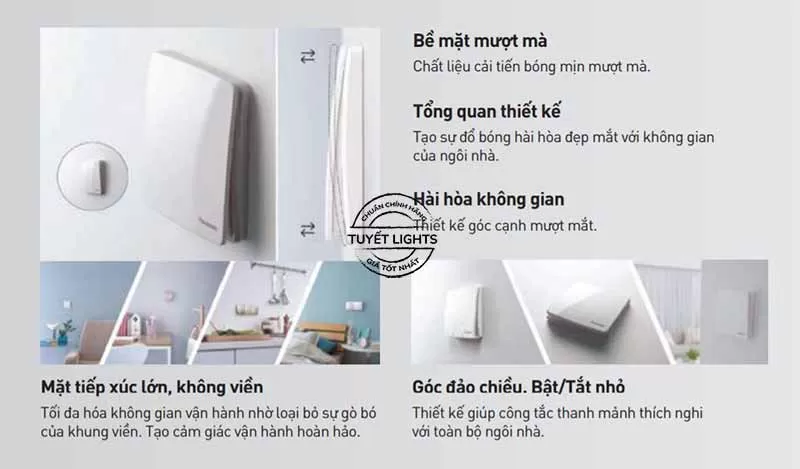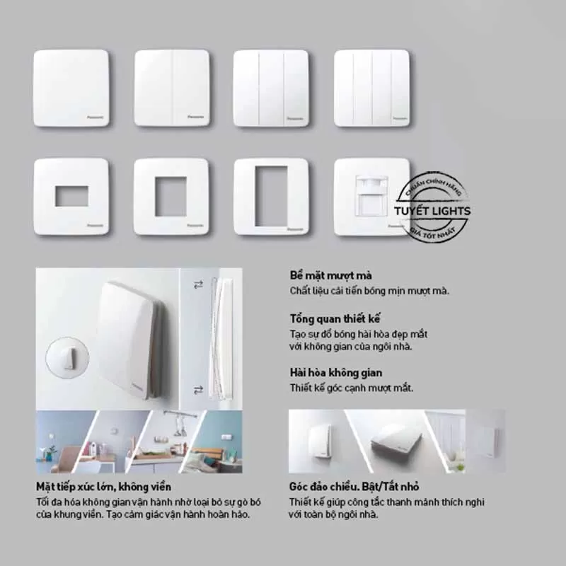 Panasonic Minerva - Bộ 4 Công Tắc B 1 Chiều - Màu Vàng Ánh Kim | WMT507MYZ-VN với thiết kế mặt tiếp xúc lớn, không viền giúp tối đa hóa không gian vận hành nhờ loại bỏ sự gò bó của khung viền so với các dòng công tắc khác, tạo cảm giác vận hành hoàn hảo. Bề mặt của công tắc sử dụng chất liệu cải tiến cho độ bóng mịn mượt mà, bo cong hài hòa với không gian. Đặc biệt góc đảo chiều bật tắt nhỏ giúp sản phẩm trông thanh mảnh, mỏng hơn.