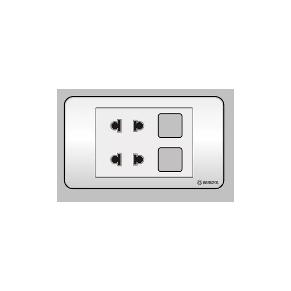Sino_S18AS - ổ đôi + 2 Lỗ Cấu tạo: Khung ABS gồm vị trí lắp ổ cắm và số lỗ phụ cho hạt.